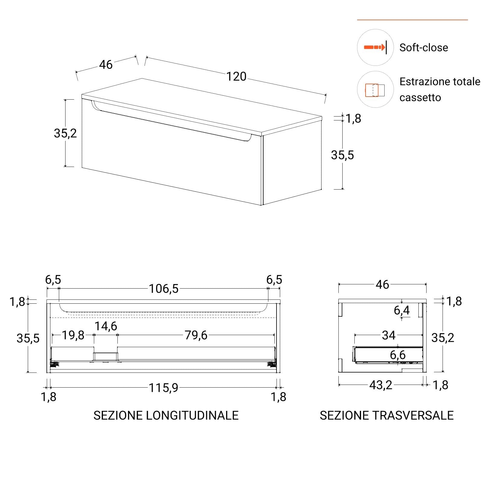 • Includes drawers with soft-close system