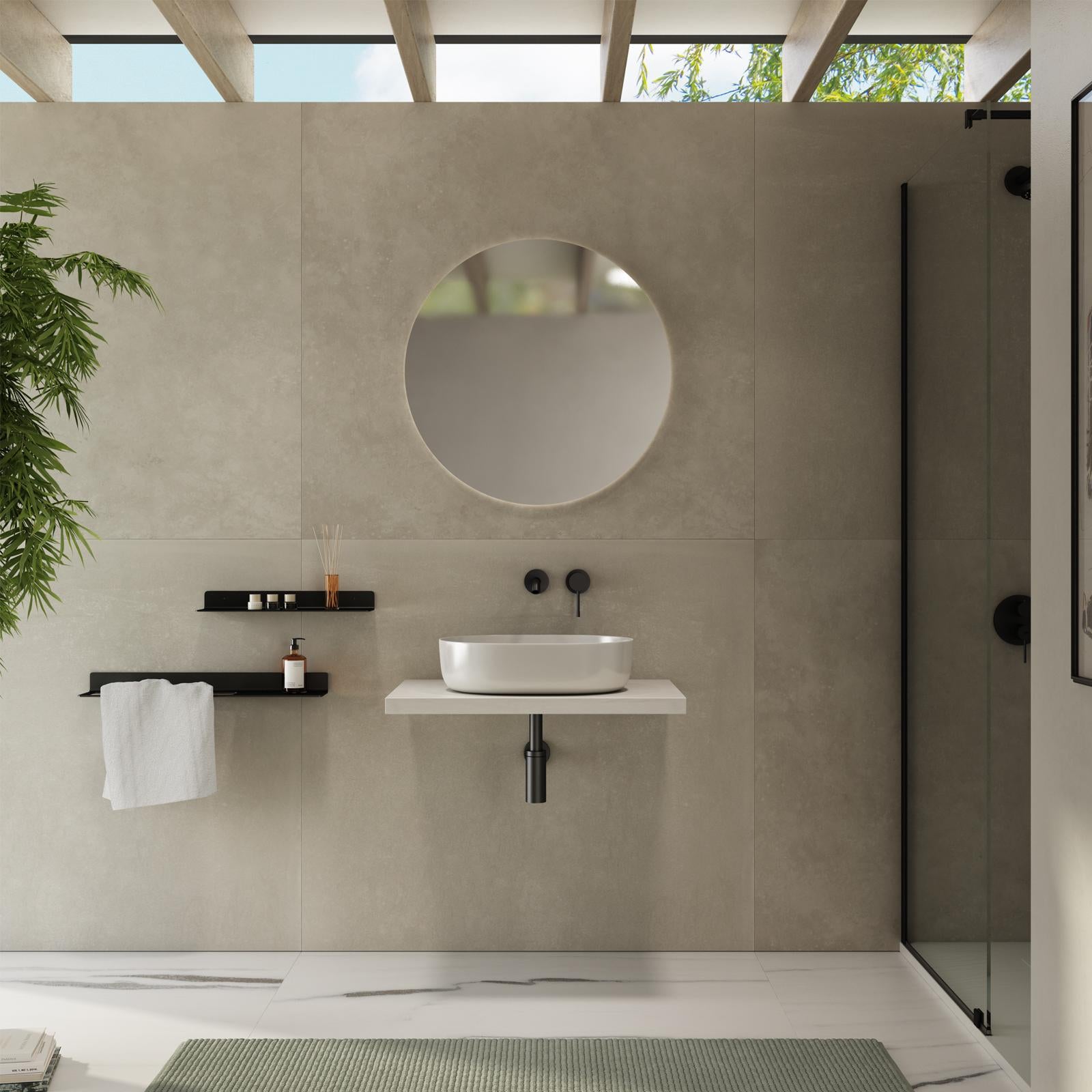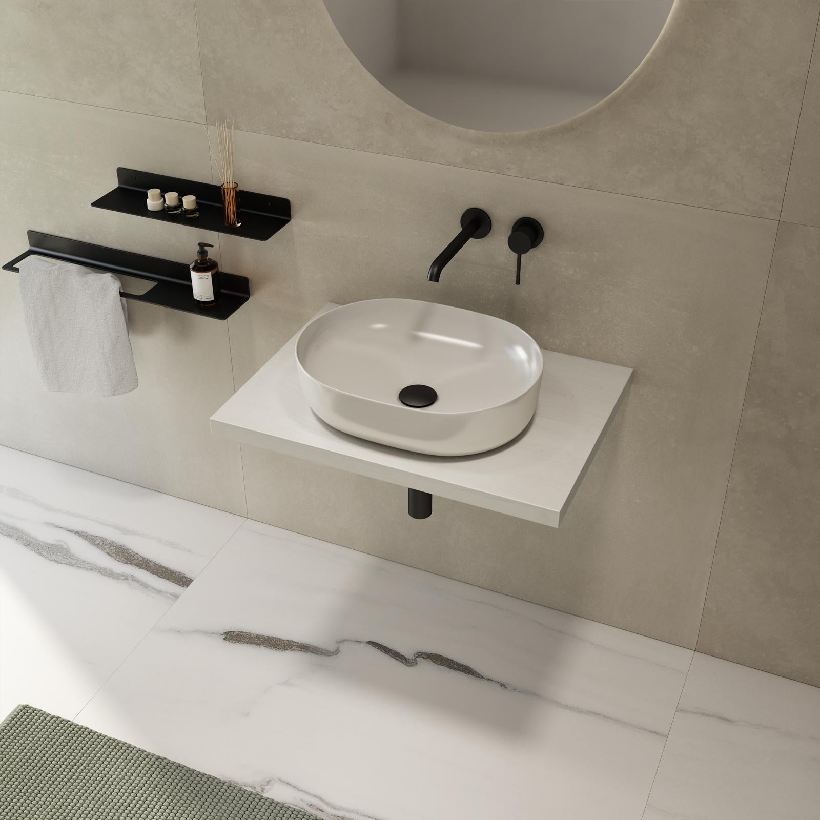 The Plain shelf is a compact and trendy suspended top for countertop washbasins. The suspended solution for your bathroom, ideal for optimal cleaning of the room, to furnish the bathroom with a modern design.