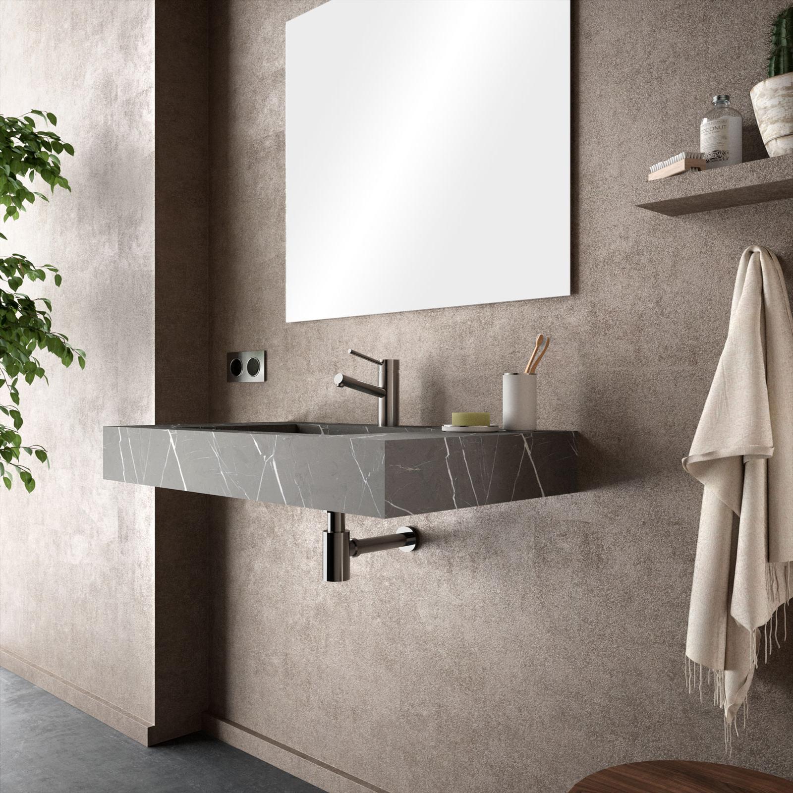 It's called Jalama and it's an innovative suspended washbasin. Why innovative? Because it's made with a modern material like HPL stratified. Jalama is a product that aims at innovation and doesn't give up on a sophisticated and modern design. The Jalama suspended washbasin is made of HPL, a material that can withstand the most demanding uses, without ever losing sight of aesthetic taste and functionality. Jalama is a water-repellent, anti-bacterial, fire-retardant, dirt-repellent and wear-resistant product. In addition to being a washbasin, we can define this product as a suspended bathroom top with an integrated washbasin.