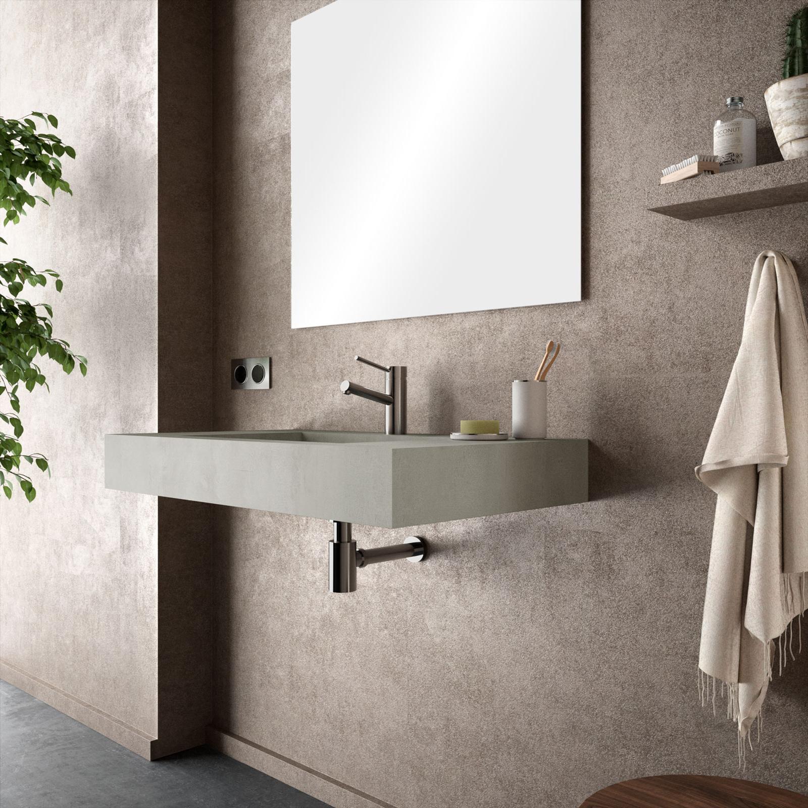 It is called Jalama and it is an innovative suspended washbasin. Why innovative? Because it is made with a modern material such as HPL stratified. Jalama is a product that aims at innovation and does not give up a sophisticated and modern design. The finish of the 80 cm suspended washbasin is alpha cement grey. In addition to being a washbasin, we can define this product as a suspended bathroom top with an integrated washbasin. The Jalama suspended washbasin is made of hpl, a material that can withstand the most demanding uses, without ever losing sight of aesthetic taste and functionality. Jalama is a water-repellent, anti-bacterial, fire-retardant, dirt-repellent and wear-resistant product.