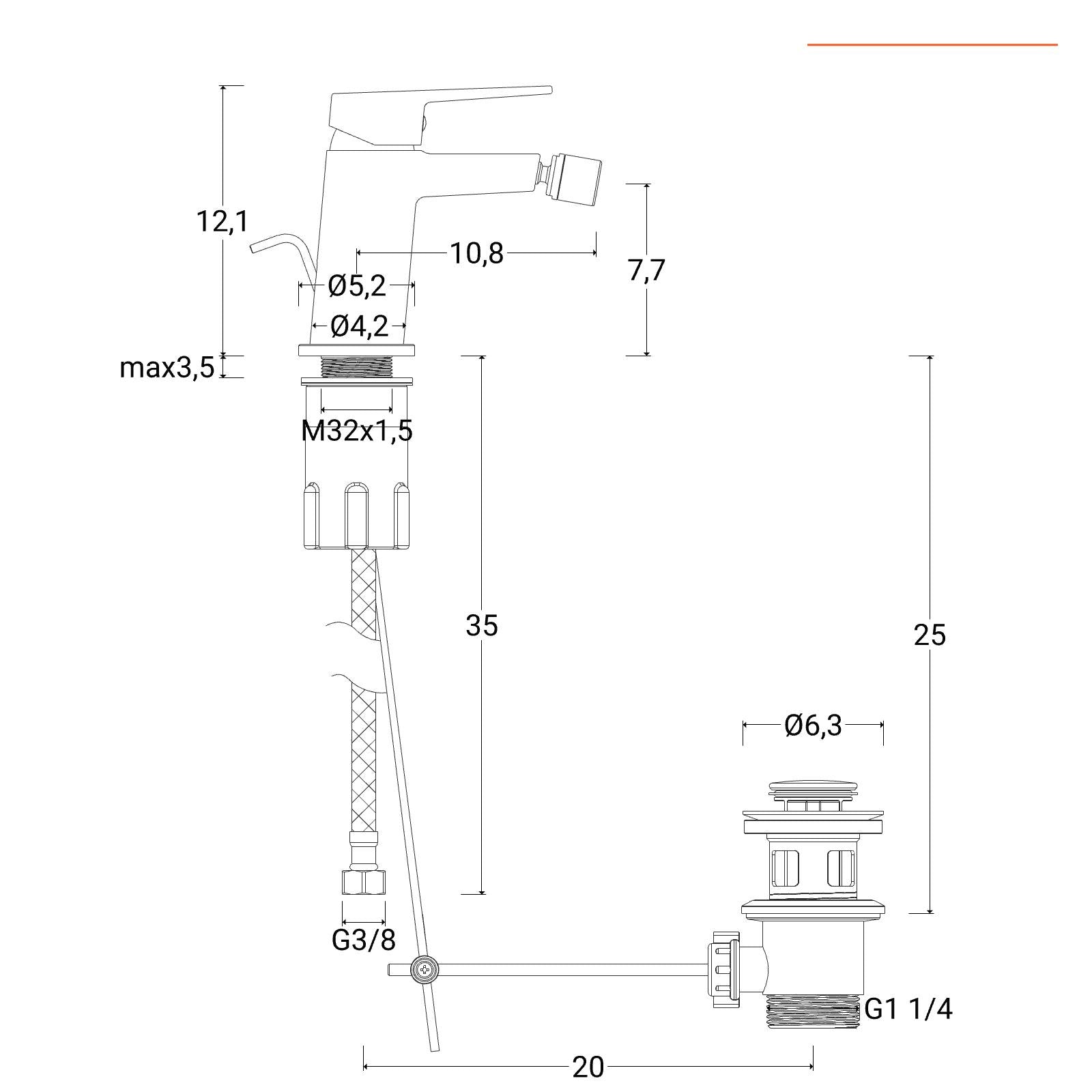 Bidet mixer with 12.1h cm chrome waste – Lir