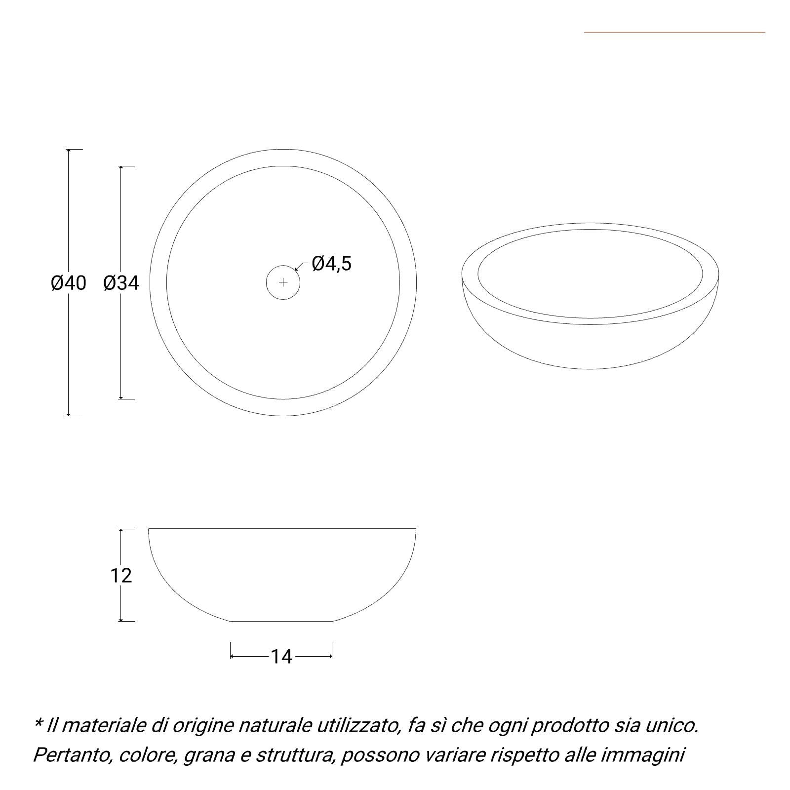 40cm Countertop Washbasin in Black Semi-gloss Marble - Artizan