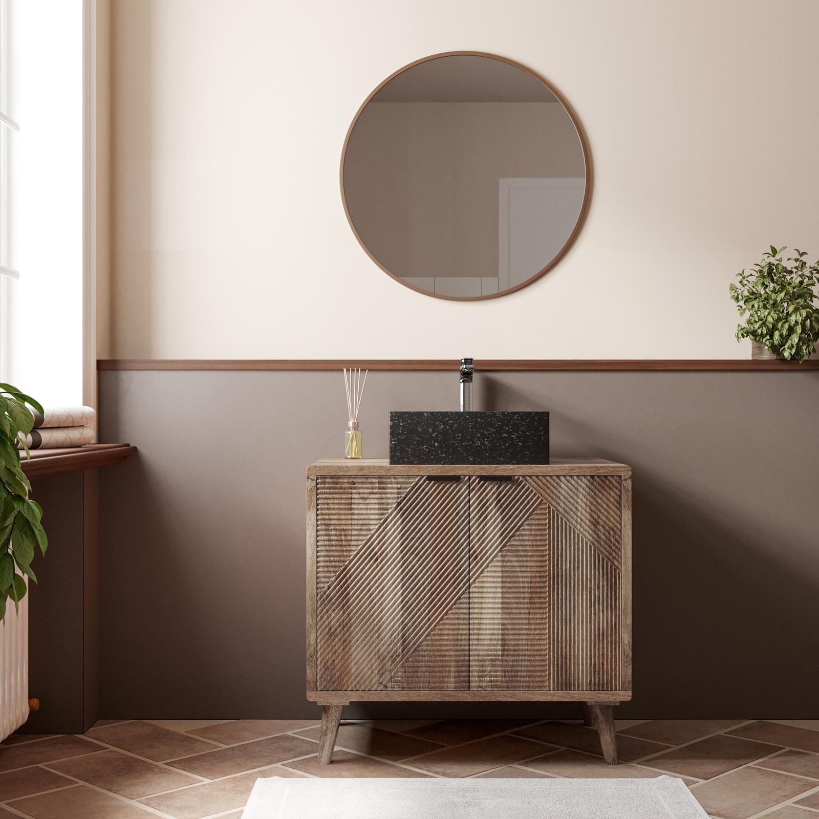 The mango wood bathroom cabinet represents an elegant and functional option to enrich your bathroom environment.
