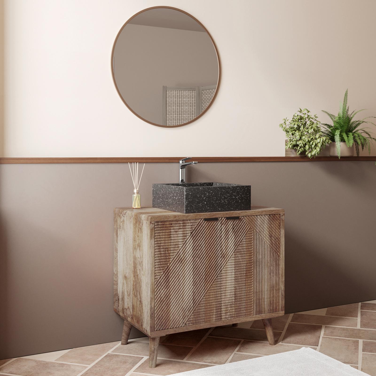 Bathroom vanity unit 80 cm with 2 doors in natural mango and mirror - Fluente