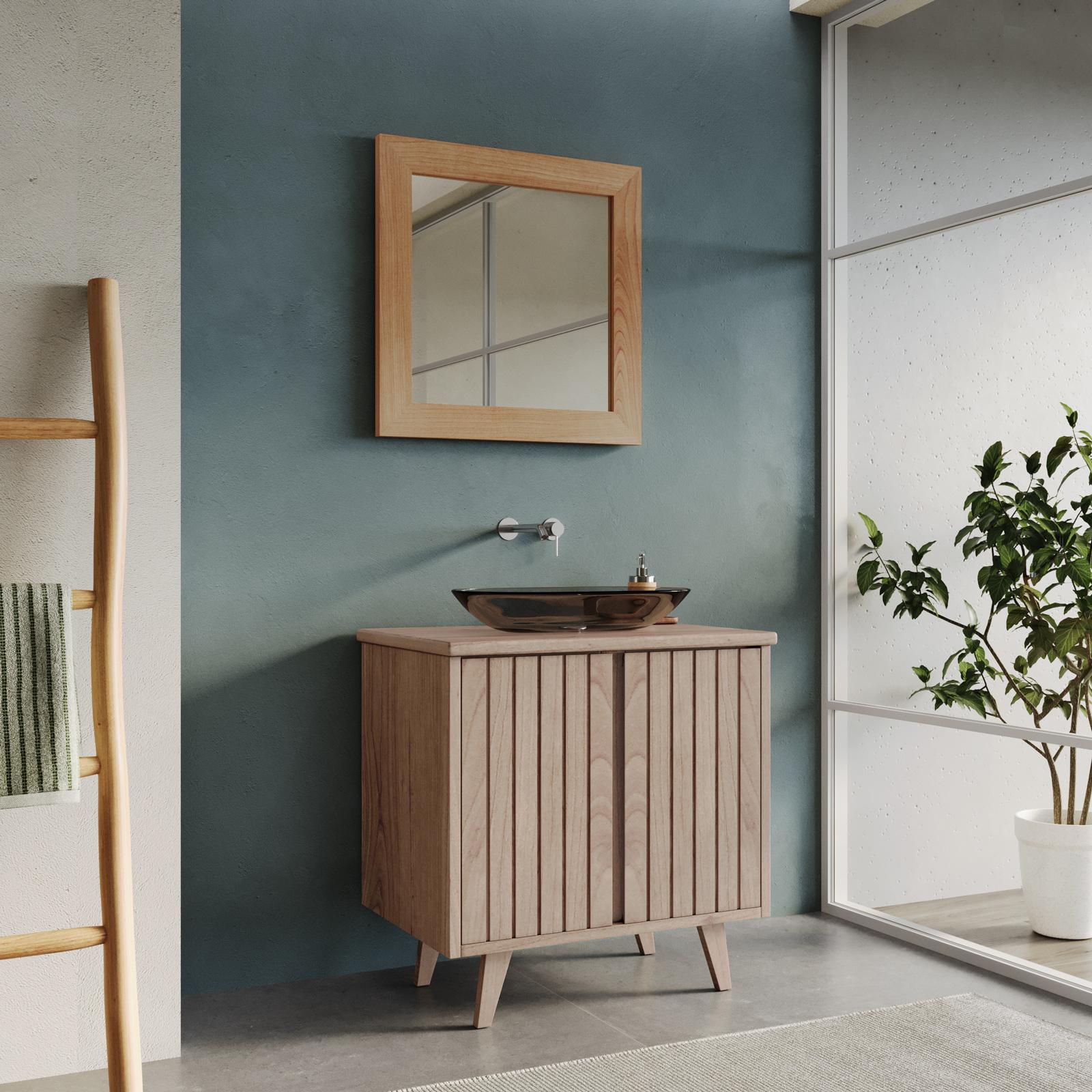 Bathroom cabinet 80 cm with doors in wood of mindi - Vivido