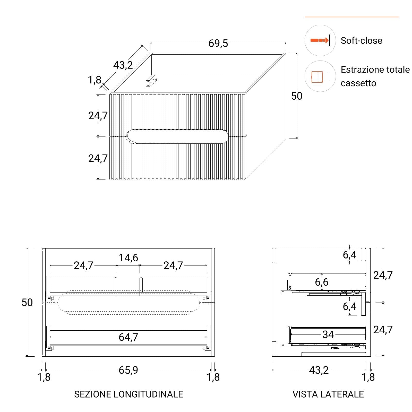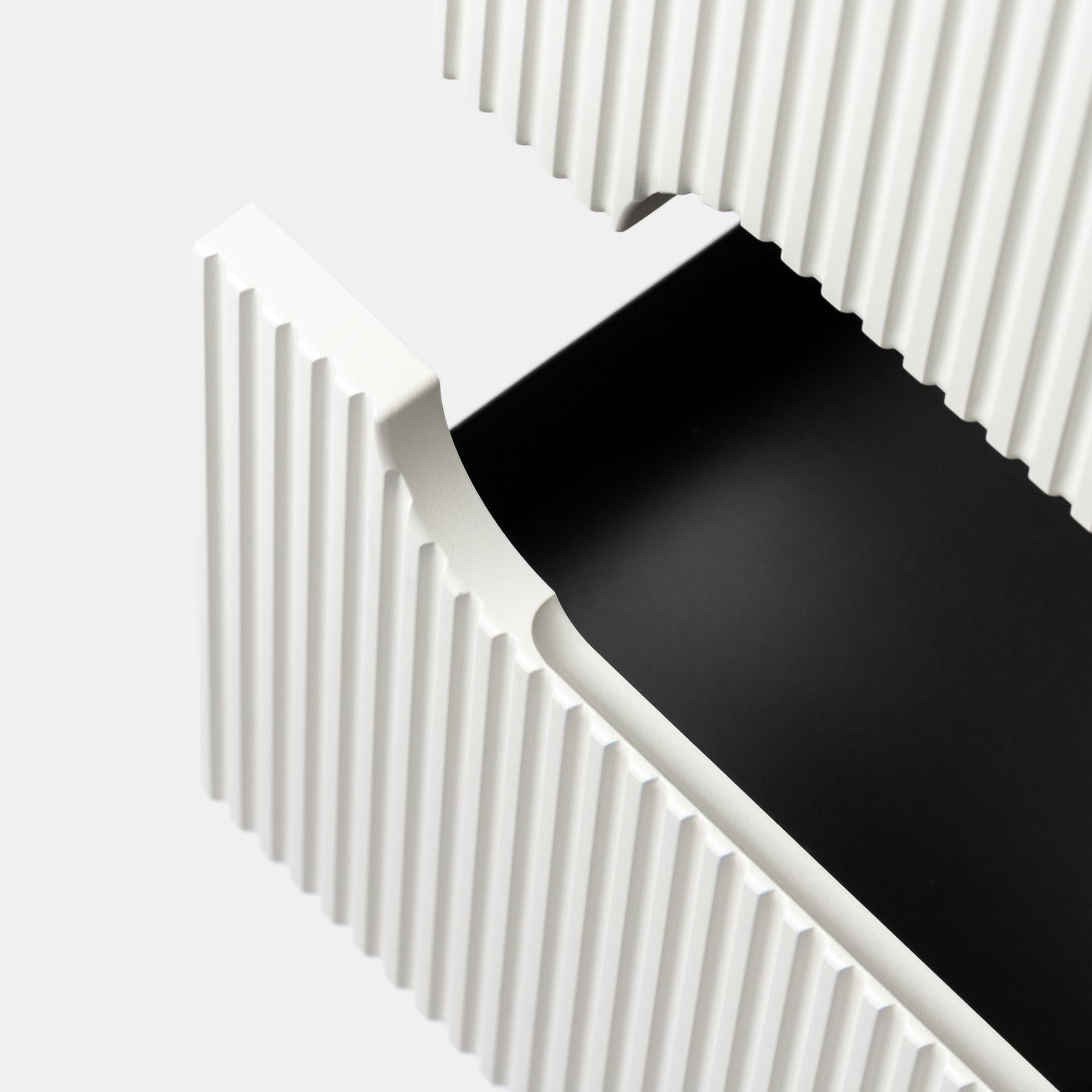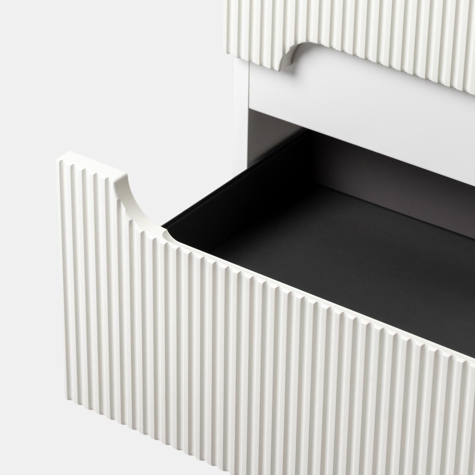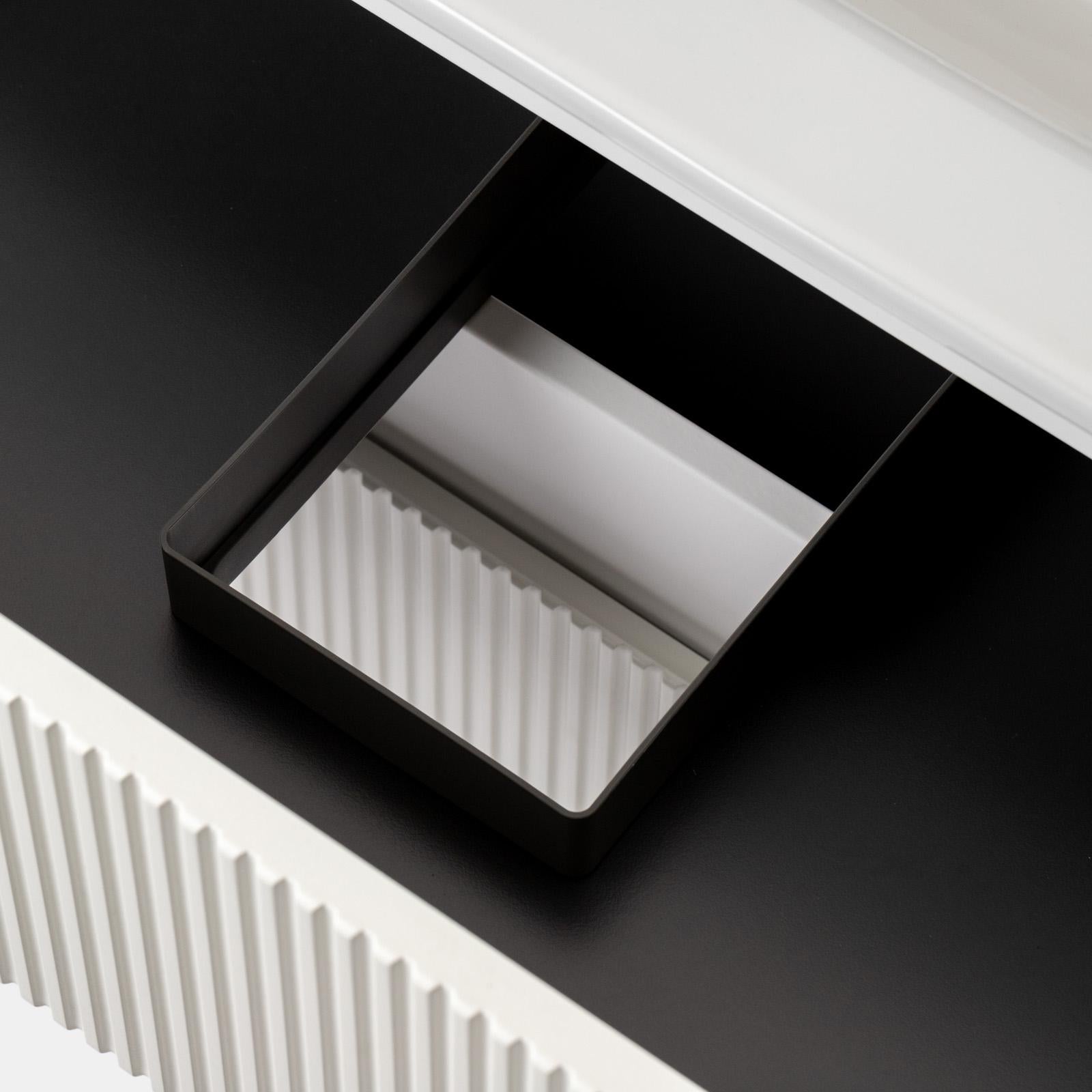 The Tayga bathroom cabinet is characterised by a ribbed finish, which gives depth to the design and creates a three-dimensional visual effect.