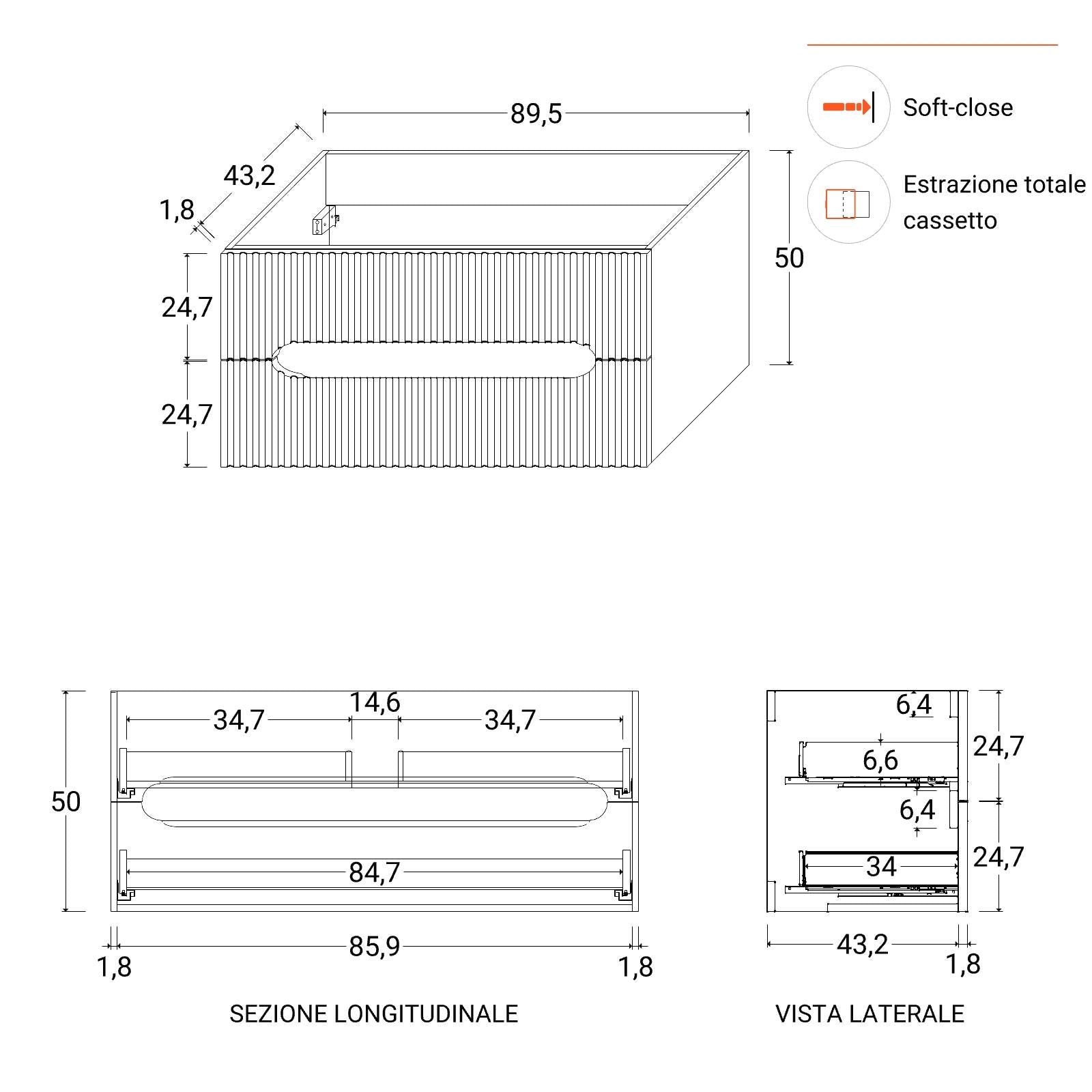 The inside of the drawer is finished in a  monochromatic  anthracite shade, the same used for the sides of the cabinet. This color choice creates a harmonious and modern aesthetic, giving visual continuity to the inside of the cabinet and a uniform and sophisticated look.