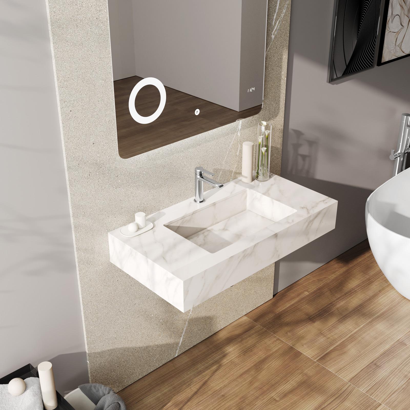 Wall-hung or countertop washbasin 90 x 46 cm in white marbled stoneware - Damala