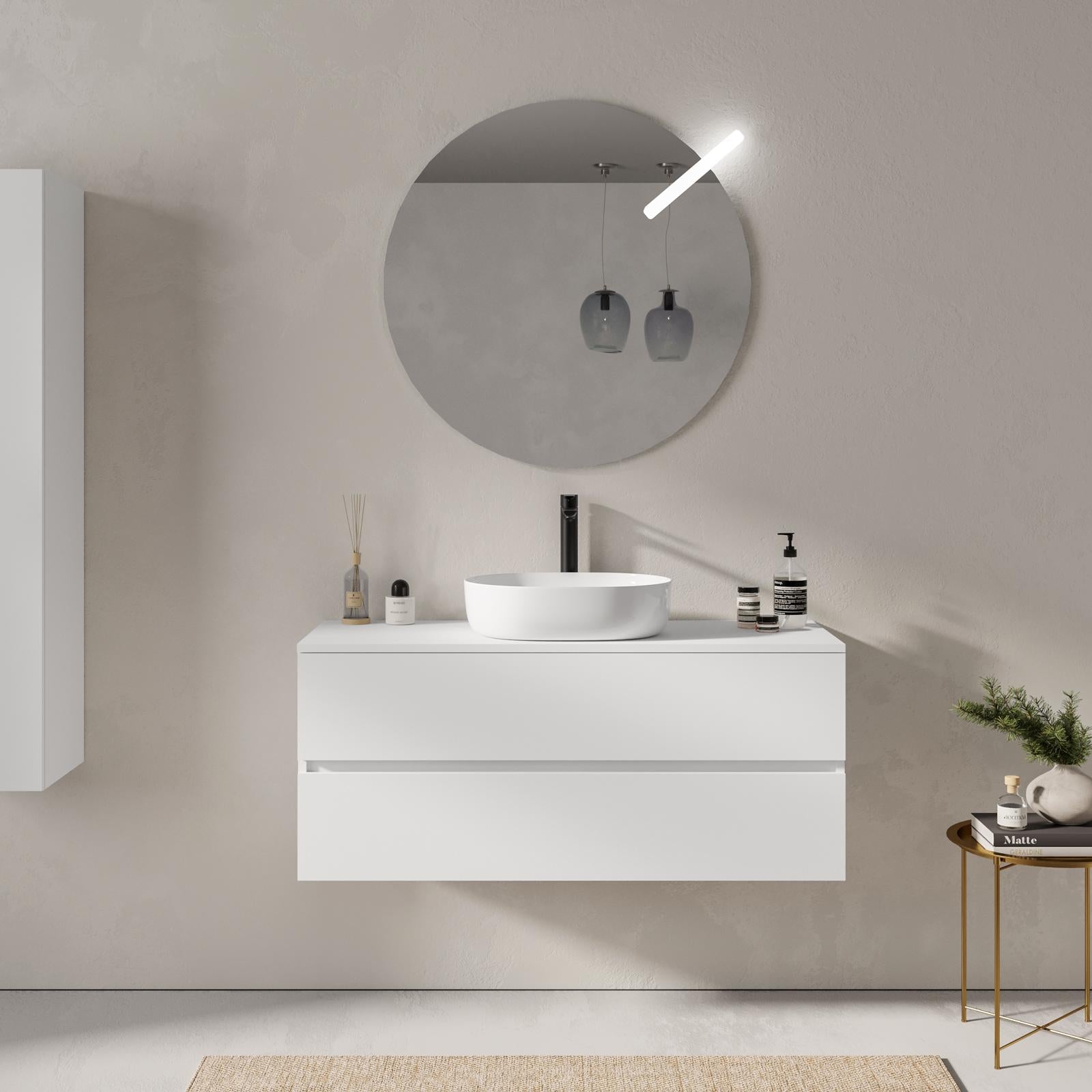 120 cm matt white suspended bathroom cabinet with 2 drawers and top with mirror - Cuki
